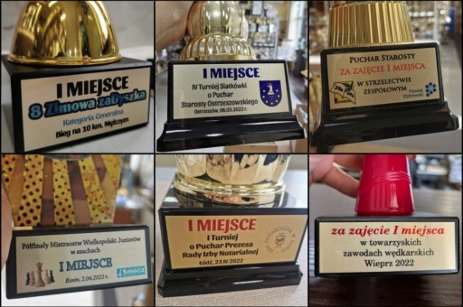 Гравірування Ostrów Wielkopolski, лазерне різання, УФ друк, сублімація, марки, лазерне маркування, кубки, статуетки, медалі та багато іншого.