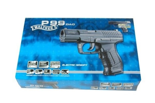 Страйкбольна копія легендарного Walther P99, що працює на 12-грамових капсулах CO2. Пістолет має систему блоу-бек, що істотно впливає на реалістичність пострілу, крім того, після вистрілу останньої кулі затвор залишається в задньому положенні, як у вогнепальної зброї. Каркас виготовлений з міцного ABS, а замок – з металу. Пістолет стріляє тільки в системі подвійної дії (можливість стрільби тільки з самовзводного курка). Рушниця має оригінальне маркування виробника зброї. Хороша якість виготовлення, надійність, висока енергія та низька ціна роблять цю рушницю дуже привабливим продуктом.