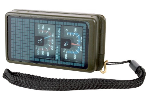 Зовні корпусу знаходяться гігрометр і термометр. Крім того, збоку корпусу є міні-кремінь і свисток.