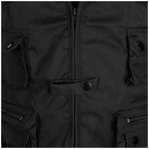Жилетка закривається на блискавку і клапан на застібку. Перевагою цього ремінця є можливість кріплення, наприклад, ремінця для фотоапарата, завдяки чому він не вдаряється об тіло під час ходьби.