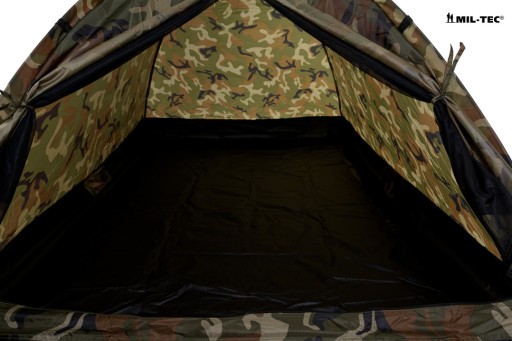 Сучасний військовий намет. Продукт німецького бренду Mil-Tec. Виготовлений з інноваційних матеріалів найвищої якості. Призначений для професійного використання. На відміну від стандартних наметів, він не вбирає воду і не протікає там, де щось торкається. Підлога виконана з міцної нейлонової тканини з PU покриттям, замість звичайного ПЕ підлоги - підвищена водостійкість. Місткий і в той же час компактний в складеному вигляді. Дуже легко і швидко розкладається і складається.