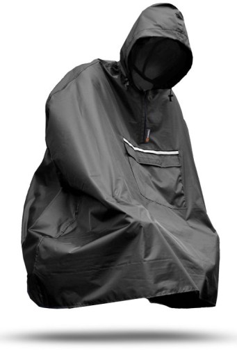 Капюшон регулюється за допомогою гумового шнура, закінченого стопором і пластиковим наконечником. Накидка застібається на блискавку. З внутрішньої сторони є дві еластичні ручки. Спереду є кишеня на липучці, яка також служить пакетом / сумкою. Ззаду і спереду є світловідбиваючі смужки - підвищення безпеки на дорозі.