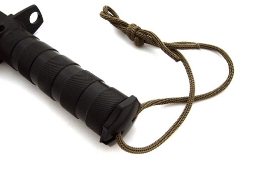 Чорна кобура з кордури дозволяє закріпити військовий ніж на поясі, щоб він завжди був під рукою.