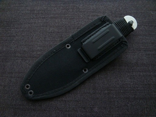 Конструкція ножа надзвичайно механічно міцна. Невеликі розміри ножа і дизайн піхов дозволяють завжди мати його при собі. Ручка обмотана чорною мотузкою. Після зняття кабелю можна прикріпити кришки рукоятки за допомогою отворів, наявних у ножі. Піхви для ножа виготовлені з кордури чорного кольору. Кріплення до пояса здійснюється металевою скобою. Ніж виготовлений з високовуглецевої сталі 4034 з гальванічним покриттям.