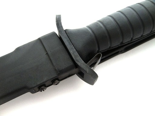 Металева фіксуюча пружина захищає ніж від випадання з піхов.