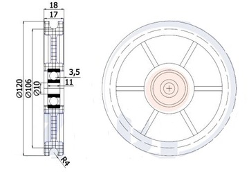 КРУГ НАТЯЖНОЙ РОЛИК fi 120мм LINE ДЛИНОЙ ДО АТЛАСА 8мм