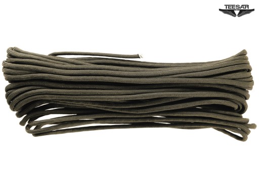 Оригінальний парашутний шнур США. Продукт сертифікованої компанії TEESAR, що виробляється від імені уряду США. Тип III, нова версія, призначена для цивільного ринку - військова специфікація. Виготовлений з нейлонових волокон. Міцна оплетка, сім плетених сердечників і один контрольний сердечник гарантують надзвичайну довговічність при дуже малій вазі. Випробування статичним навантаженням до 250 кг. Стійкий до стирання, різання тупим інструментом і високих температур. Ідеально підходить для складання обладнання та аксесуарів, для будівництва укриттів і дощок, як повідця, на човні, в кемпінгу, вдома та в саду. Швидко сохне, не гниє і не пліснявіє. Згорнуто на заводі так, що легко розгортається і займає мінімум місця.