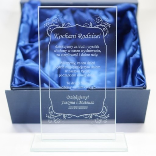 Елегантним доповненням до статуетки є блакитний футляр, обшитий синьою атласною тканиною.