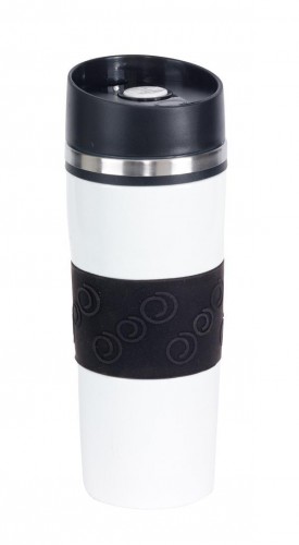 Зовні і всередині виготовлені з нержавіючої сталі; він має кольорову поворотну кришку, кнопку ВІДКРИТИ/ЗАКРИТИ та вбудований отвір для пиття, а також кольоровий силіконовий чохол для легшого захоплення та гумове дно для кращого захоплення.