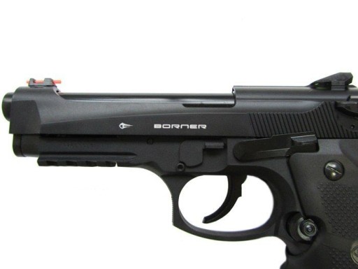 Рамка пістолета Borner Sport 331 виконана з пластику, а затвор і зовнішня поверхня ствола - з металу. Завдяки використанню системи Blowback під час пострілу затвор відкидається, а курок взводиться.