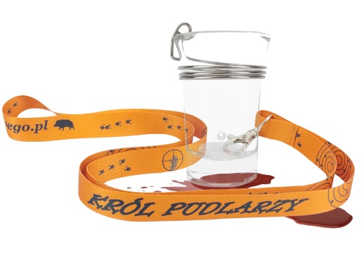 Унікальна скляна чарка з металевим затискачем, отвором і мисливським повідцем.