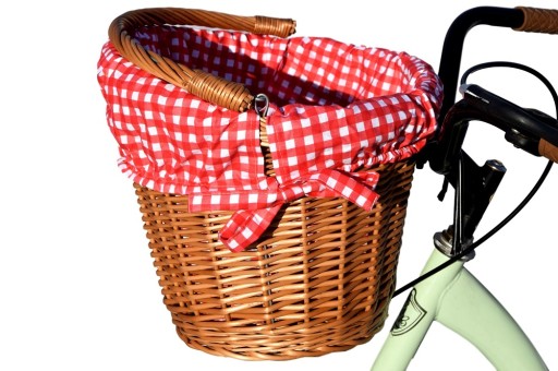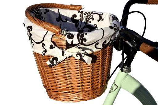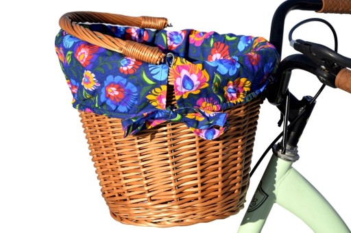 Плетений кошик для велосипеда з гачками + ПОДкладка - колір обробки на вибір (100% бавовна) - ідеально підходить для велосипедних прогулянок, шопінгу, а також для перенесення собаки чи кота. Дуже міцна конструкція гарантує безпечне та зручне перенесення покупок. Кошик розміщується на передній частині керма за допомогою відповідно зігнутих металевих стрижнів, захищених спеціальним пластиком.