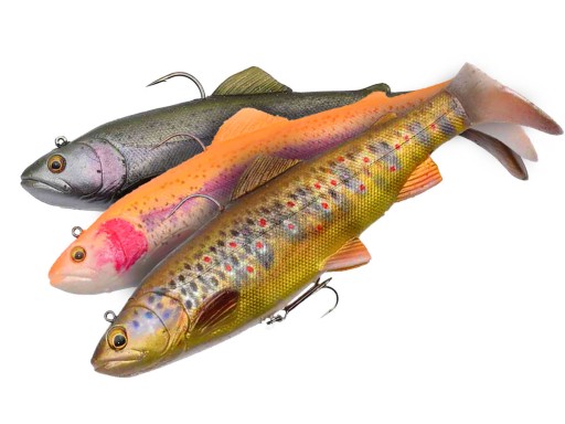 ПРИНАБА, ГУМА SAVAGE GEAR TROUT 4D RATTLE TROUT ДОСТУПНА В ТРЬОХ РОЗМІРАХ 12,5 см, 17 см і 20,5 см