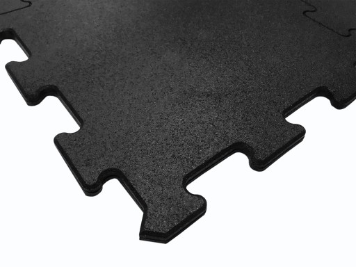 Гумові килимки у формі пазла призначені для фітнес-залів, кросфіт-класів або тренажерних залів. Виріб виготовлено з високоякісного гумового грануляту та поліуретанового клею. Продукт абсолютно безпечний, сертифікований Національним інститутом гігієни. Матеріал забезпечує стійкість під час занять, поверхня має протиковзкі властивості. Головоломка має високу стійкість до ударів і стирання - ідеально підходить для динамічних тренувань. Крім того, продукт має властивості поглинання та гасіння вібрації та звуків. Кріплення пазла за допомогою виступів забезпечує легке складання (без використання клею) і полегшує розбирання та заміну окремих дощок.