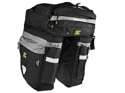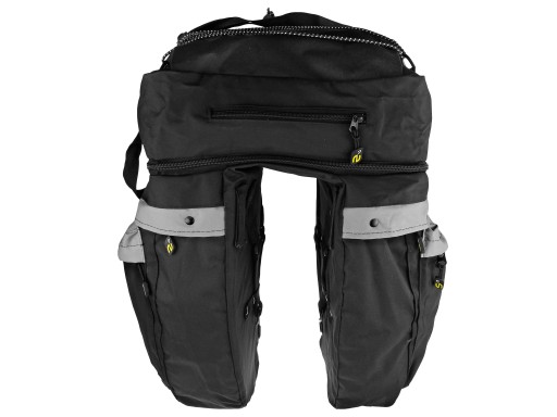 Можливість від'єднати верхню сумку (дві бічні сумки залишаються на велосипеді, з'єднані матеріалом над багажником).