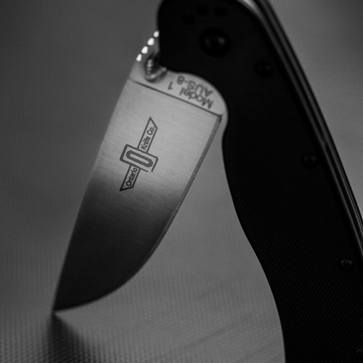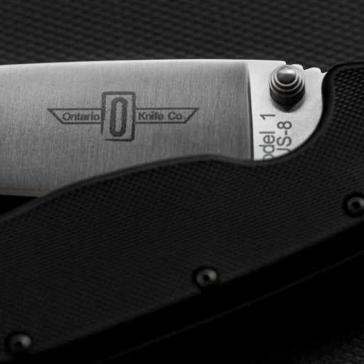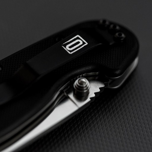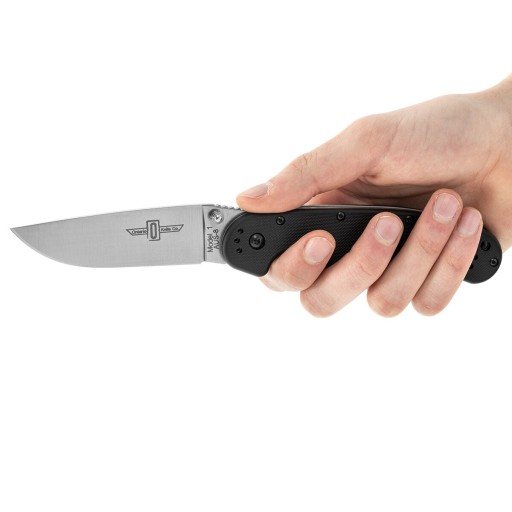 Ніж характеризується гладким клинком з профілем точки падіння, виготовленим з нержавіючої сталі AUS-8 з матовим покриттям. На лезі є двосторонній штифт, що управляється великим пальцем, завдяки якому ви можете легко відкрити ніж як правою, так і лівою рукою.