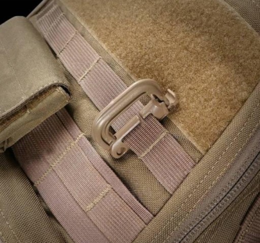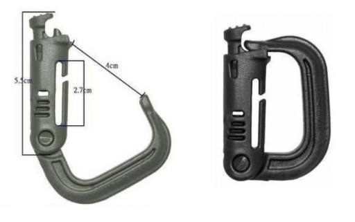 Пластиковий карабін з кнопковим замком і засувом і можливістю кріплення в систему MOLLE / PALS