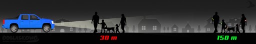 Після настання темряви пішохода в темному одязі видно з відстані приблизно 30 метрів. Однак людину зі світловідбиваючими елементами видно навіть з відстані 150 метрів. Це точно зменшує ризик аварії. Ці додаткові лічильники дозволяють водієві загальмувати та безпечно проїхати пішохода.