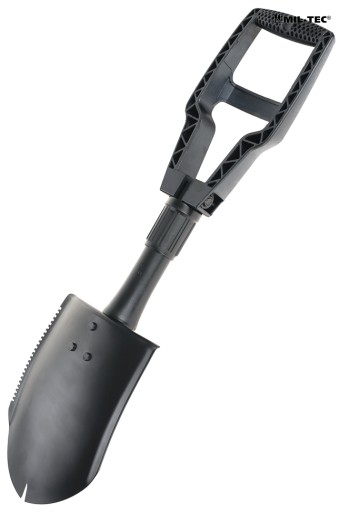 Складна військова лопата, нова модель, яка є вдосконаленням перевіреної американської лопати. Легкий, дуже зручний і маленький після складання, він знайде широкий спектр практичних застосувань не тільки на тренувальному майданчику, але й у домашньому саду, надзвичайно корисний в автомобілі. Універсальна, крім класичної функції лопати, в складеному наполовину функціонує також як копач, гачок або кирка (для копання суглинистого, мерзлого ґрунту).