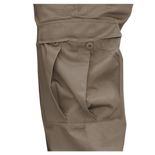Штани мають дві кишені спереду, дві ззаду і дві бічні кишені. Бічні та задні кишені закриваються клапанами на кнопках.