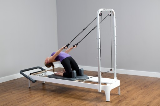 Універсальна та компактна система вправ для пілатесу, яка поєднує надійний та елегантний реформер із напівтрапецією (вежею).