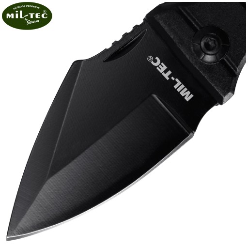 Лезо Drop-Point виготовлено з нержавіючої сталі, покритої чорним оксидом, щоб зменшити відбиття світла.