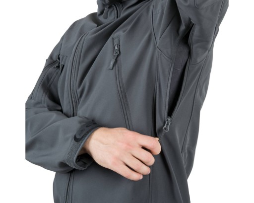 Helikon Gunfighter - легка і дуже практична куртка софтшелл. Він виготовлений з 3-шарового гнучкого матеріалу Shark Skin, який забезпечує чудову ізоляцію та захист від вітру та вологи, зберігаючи при цьому високий рівень повітропроникності. Ззовні світшот покритий тефлоновим покриттям DuPont, яке захищає від бруду та води. Зсередини обшита м'яким флісом. Куртка має сім кишень, прихований у комір і регульований капюшон, вентиляційні блискавки під пахвами, липучки на манжетах і рант. Капюшон можна зручно регулювати, не виймаючи рук з кишень, за допомогою шнурків, захованих у нагрудних кишенях.