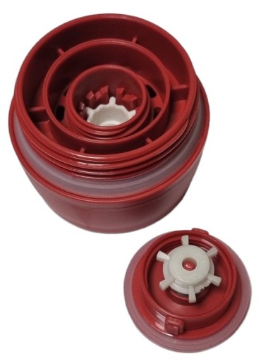 Він має інноваційну пробку на 360°, яка дозволяє пити з будь-якого боку чашки. Він оснащений автоматичною пробкою «клік-клак», яка гарантує 100% герметичність і, отже, дуже безпечне використання цієї унікальної гуртки. Вам не потрібно відкручувати чашку, щоб випити (просто натисніть кнопку). Кружка має знімну кришку, тому її можна ретельно мити. Профільована форма чашки також надзвичайно ергономічна.