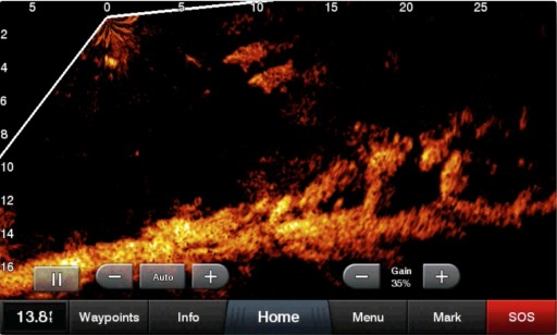 Режим LiveScope down дозволяє переглядати живі, прості для інтерпретації зображення сонара, які сканують об’єкти та рибу під вашим човном дуже детально – на відстані до 61 метра – навіть коли човен стоїть.
