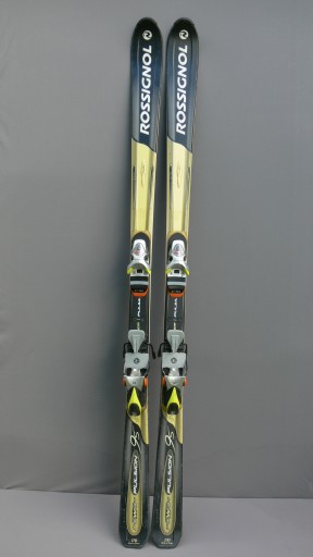 Лижі б/у ROSSIGNOL POWER PULSION 9S, довжина 170см; бічний виріз 110-65-98, радіус повороту 15м; з кріпленнями ROSSIGNOL AXIAL RACE 120 (діапазон 4 - 12), на пластині для довжини черевика 260 - 360 мм.