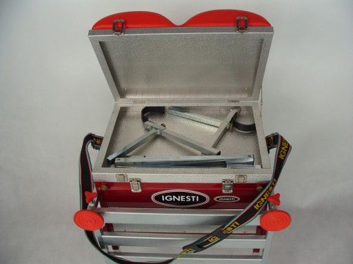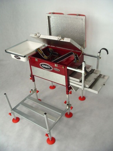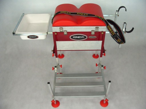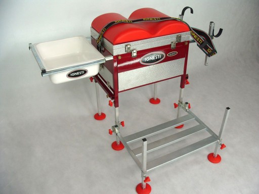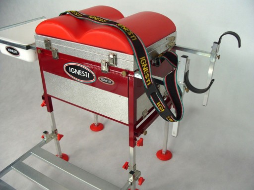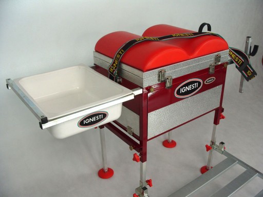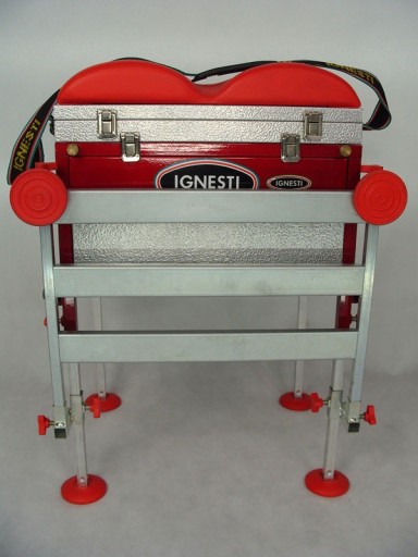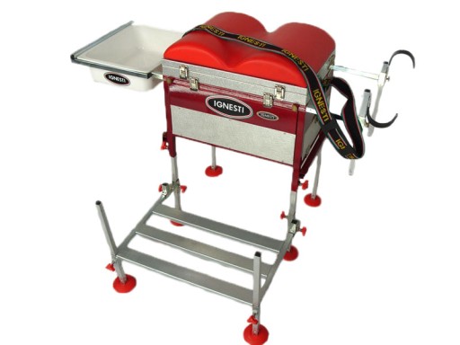 Італійська компанія Ignesti відома своєю продукцією дуже хорошої якості і «надмірними» параметрами свого товару. Ignesti виробляє чудові поплавці, волосіні, гачки та посадки. Платформа, яку ми пропонуємо, абсолютно високого класу - це мрія кожного спортсмена. Виготовляється зі сталі, дюралюмінію та латуні. Деякі його елементи покриті лаком вишневого кольору (чудовий ефект).