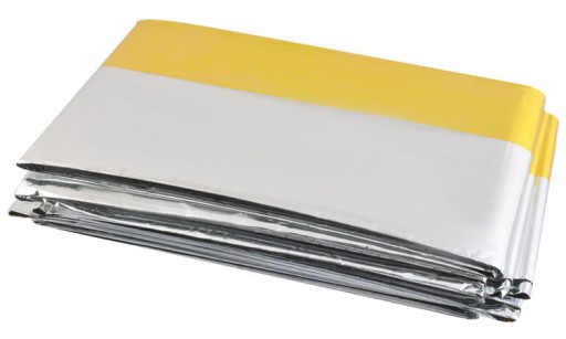 Рятувальну ковдру слід розстелити на всю ширину й загорнути навколо пораненого. Заклейте кінці скотчем, пластиром або зав’яжіть їх, але залиште обличчя пораненої людини відкритим. Аварійна термоковдра з двосторонньої плівки, яка використовується в порятунку, туризмі, скелелазінні, екстрених ситуаціях або екстремальних умовах.