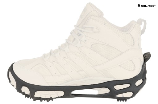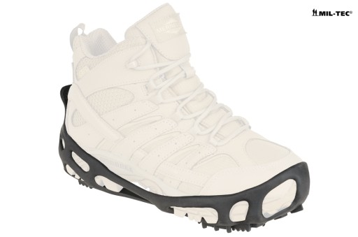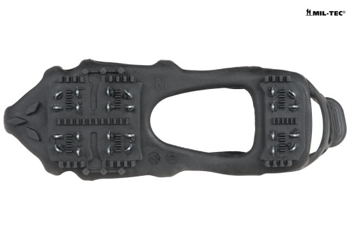 Крампони - бахіли проти ковзання. Продукт німецького бренду Mil-Tec. Призначений для забезпечення максимального зчеплення взуття на слизькій поверхні (лід, сніг, мокрі пірси, дахи, скелі тощо). Рекомендовано всім, де є ризик посковзнутися та впасти. Призначений для любителів трекінгу та активного відпочинку. Незамінний на гірських стежках, при розчищенні снігу з дахів і обмерзлих тротуарів. Універсальні - підходять до різних моделей взуття. Легко і швидко надягаються, вони займають мало місця і легкі - обов'язкове спорядження в подорожі.