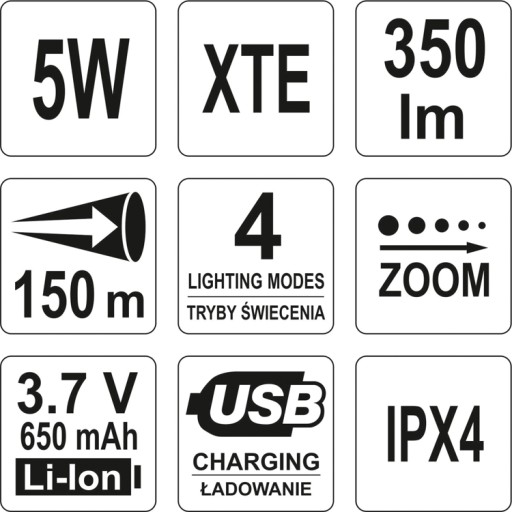 - високий клас герметичності IPX4 захищає ліхтар від бризок води та дощу