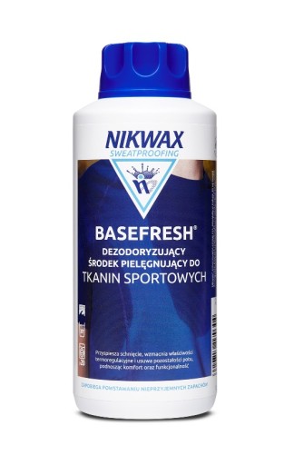 Звичайні побутові миючі засоби та пом’якшувачі тканин негативно впливатимуть на здатність базових шарів відводити вологу. Стандартні побутові миючі засоби не запобігають накопиченню запахів у тканині під час використання одягу чи взуття. Звичайні ополіскувачі залишають неприємні для води (гідрофобні) залишки, які обмежують функцію тканини, не даючи їй пропускати вологу та повноцінно виконувати свої функції. При використанні замість пом’якшувача тканин Nikwax BaseFresh дозволяє використовувати звичайні побутові миючі засоби для чищення без шкоди для функціональності базових шарів. Крім того, Nikwax BaseFresh покращує передачу вологи, прискорює висихання, усуває запахи та запобігає накопиченню.