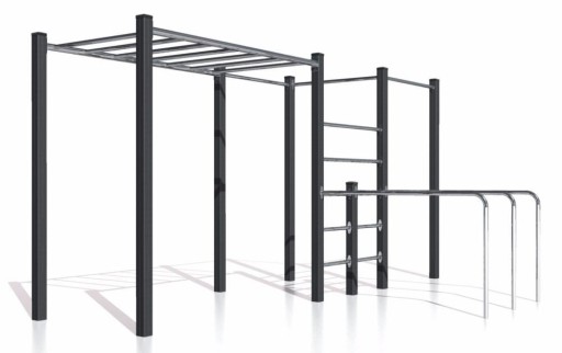 Набір закріплений болтами та адаптований для бетонування, а завдяки антикорозійному захисту та порошковому покриттю ідеально підходить для тренувань на відкритому повітрі незалежно від пори року.