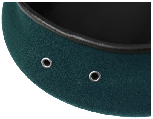 Берет оснащений шнурком. З лівого боку він має почорнілі заклепки з нержавіючої сталі, які служать вентиляційними отворами.