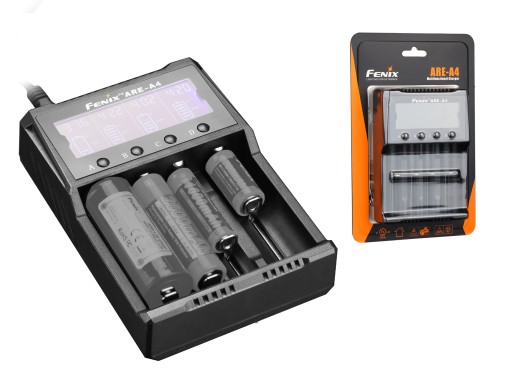 Fenix ARE-A4 - це інтелектуальний зарядний пристрій нового покоління, завдяки якому ми можемо правильно і безпечно заряджати різні типи Li-ion, Ni-MH і Ni-Cd акумуляторів. Незважаючи на передову конструкцію, керувати пристроєм надзвичайно просто. Після встановлення акумуляторів і підключення зарядного пристрою до джерела живлення на РК-дисплеї з'явиться інформація про рівень напруги та графічна візуалізація рівня їх заряду.