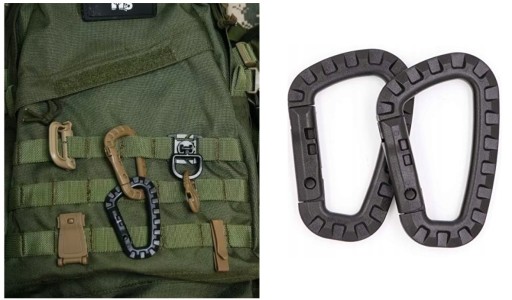 - Карабіни D RING 2 шт.: Чорні або оливково-зелені