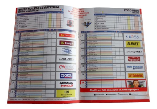 Програма змагань SUPER MATCH ARGED MALESA TŻ OSTROVIA OSTRÓW WILKOPOLSKI vs FOGO UNIA LESZNO