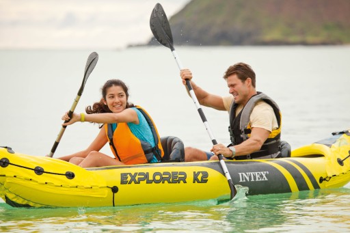 - Надувна байдарка Intex Explorer K2 - це ідеальне спортивне спорядження для активного, одиночного або двомісного відпочинку. Байдарка з розмірами 312 x 91 x 51 см може перевозити максимальне навантаження 180 кг.