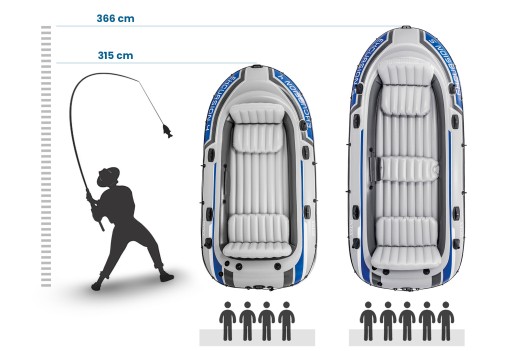 - Його вражаючі розміри 315 x 165 x 43 см забезпечать комфорт і свободу для 4 осіб. Понтон витримує навантаження до 500 кг.