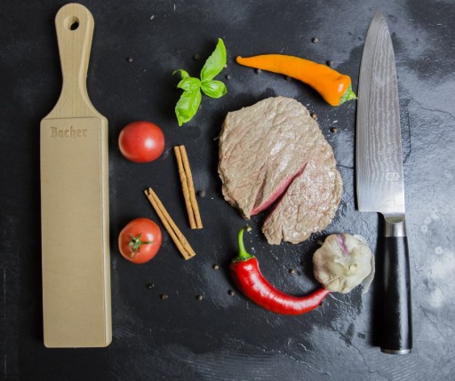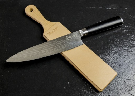 Пояс має гладкість і шорстка сторона, що дозволяє налаштувати цей аксесуар під уподобання користувача. Суцільна ручка забезпечує комфорт під час роботи. Стеля єуніверсальний і дуже простий у використанні. Його можна використовувати для полірування всіх видів кухонних ножів, бритв, стамесок та будь-яких інших інструментів, які використовують гострого леза.