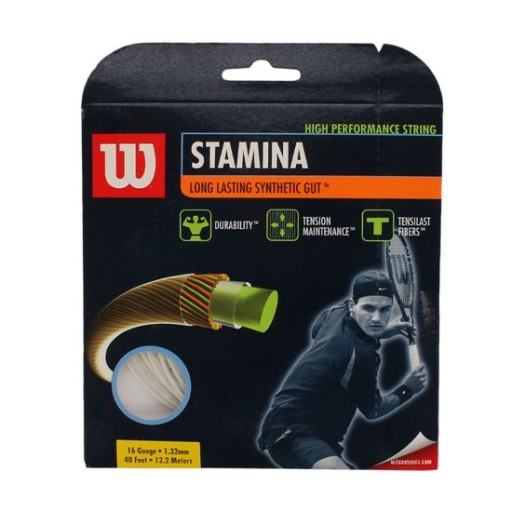 Струни для тенісних ракеток Wilson Stamina - синтетичні тенісні струни, що відрізняються високою міцністю. Однорідний м’який сополімерний сердечник, оточений захисним покриттям, забезпечує відчуття та еластичність. Покритий мікроволокнами Tensilast, він характеризується низькою втратою напруги. Все це покрито жорстким захисним покриттям, що підвищує довговічність.