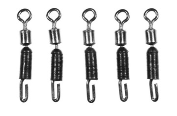 Bardzo wygodne i praktyczne mocne krętliki, dzięki którym można szybko zmieniać przypony. W tym celu wystarczy umieścić przypon w dolnej części krętlika i nasunąć osłonę.