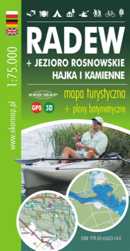 Картографічна частина: туристична та каное-карта річки Радева, батиметричні карти озер: Росновське, Гайка та Кам'яне, легенда польською, німецькою та англійською мовами.