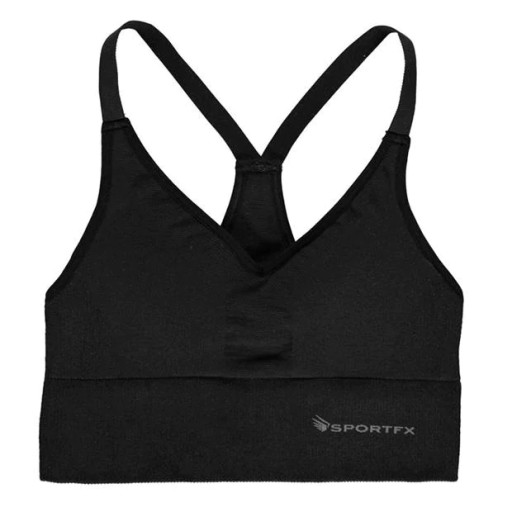 Тренуйтеся з комфортом у цьому безшовному спортивному бюстгальтері SportFX з ребрами. Цей вигляд створений як безшовний і з ребрами, щоб запобігти натиранню та забезпечити зручну посадку. Цей легкий і просторий стиль є стильним вибором для тренажерного залу та доповнений брендом SportFX.