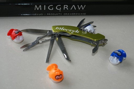 Пропонує елегантний зелений кишеньковий ніж із вашим гравіюванням.
