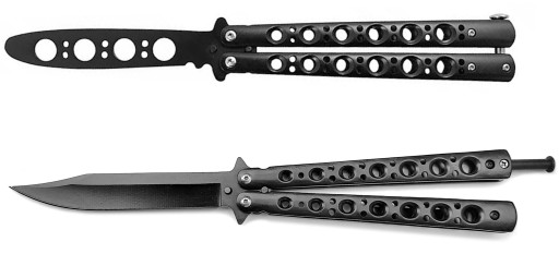 Тренувальний ніж метелик. Завдяки йому ви можете вдосконалювати свої навички батерфляя, відпрацьовуючи трюки з абсолютно безпечним інструментом, з тупим лезом. Має вбудований замок проти відкривання. Легко збирається.