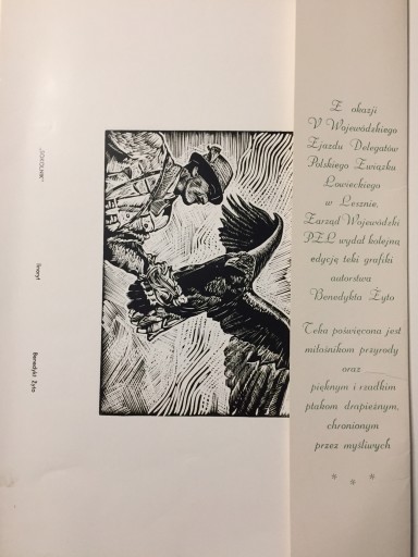 Продам альбом Польське мисливське товариство, Хижі птахи, Бенедикт Жито, Ліногравюри, 5-й воєводський з'їзд делегатів Польського мисливського товариства в Лешно, 14 жовтня 1995 року.